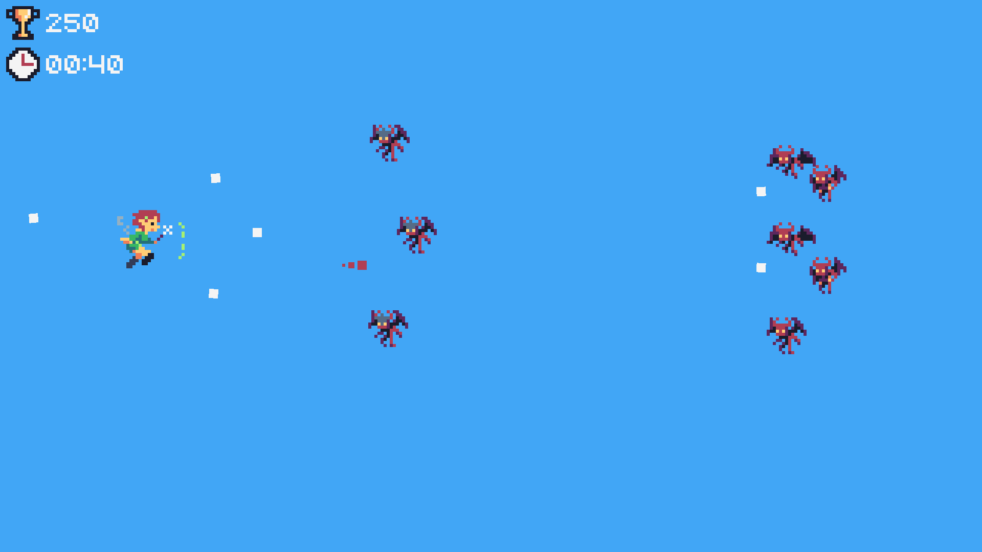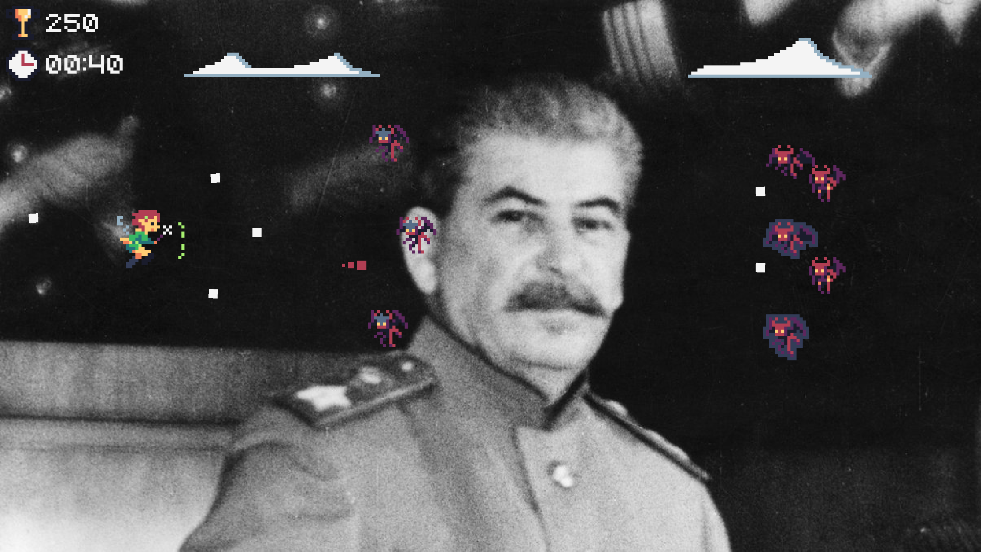 I want to add some background elements to this level, so it isn't just solid blue. But I'm worried adding anything would make it harder to see what's happening. I thought about clouds, but they would have to be the same color as the bullets. Any other ideas?