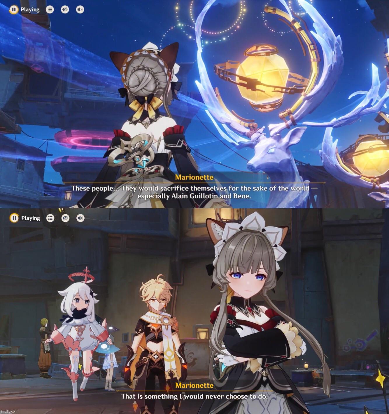 There is clearly time travel fuckery shown in the AQ and implied in the 6.3 promo image. Sandrone will get stuck in a different time fighting Dottore and later we will be retrieve her to be reborn as Mary Ann, with Sandrone's memories intact. In the water, the future mirrors the past. >source: I made it up