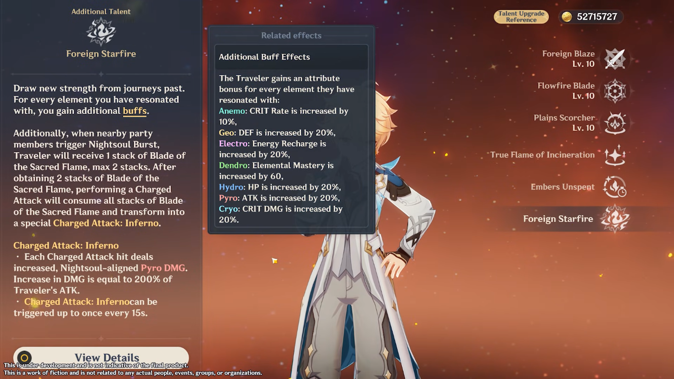 >>729849158I notice this version is the pyro traveler.Is it different bonus talents for each element? Have the leaks shown this yet?