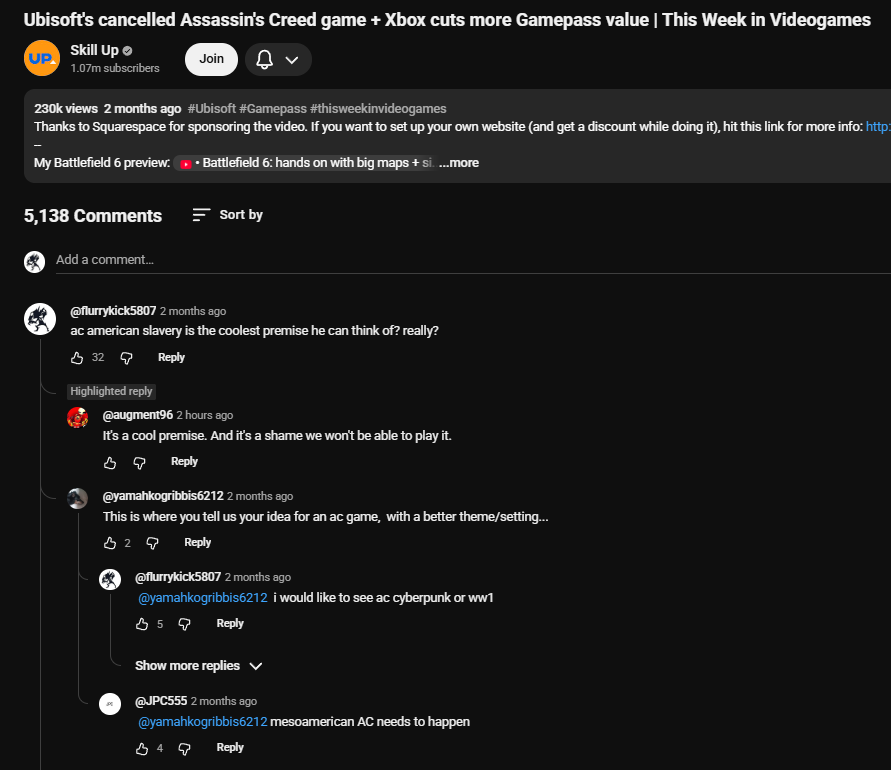 >>729884092Interesting. Personally in both Odyssey and in Valhalla I prefer the fem characters. I don't know what it is, but in most games I find the female voice acting better. Fem V in Cyberpunk comes to mind. But also: these playerbases for these honestly pretty mid games is HUGE, so 31% of players is nothing to scoff at, either. That's almost a third of the player base. It's not like it's 2%. >>729884184>In Unity they got criticism over female animationsMore specifically, Ubisoft mentioned that they WANTED to put a woman into Unity, but said it was too much work. Quote: "It’s double the animations, it’s double the voices, all that stuff and double the visual assets,”And people mocked them, because they felt like making one female assassin in a game where you have 4 multiplayer characters would not exactly expand the budget a crazy amount.