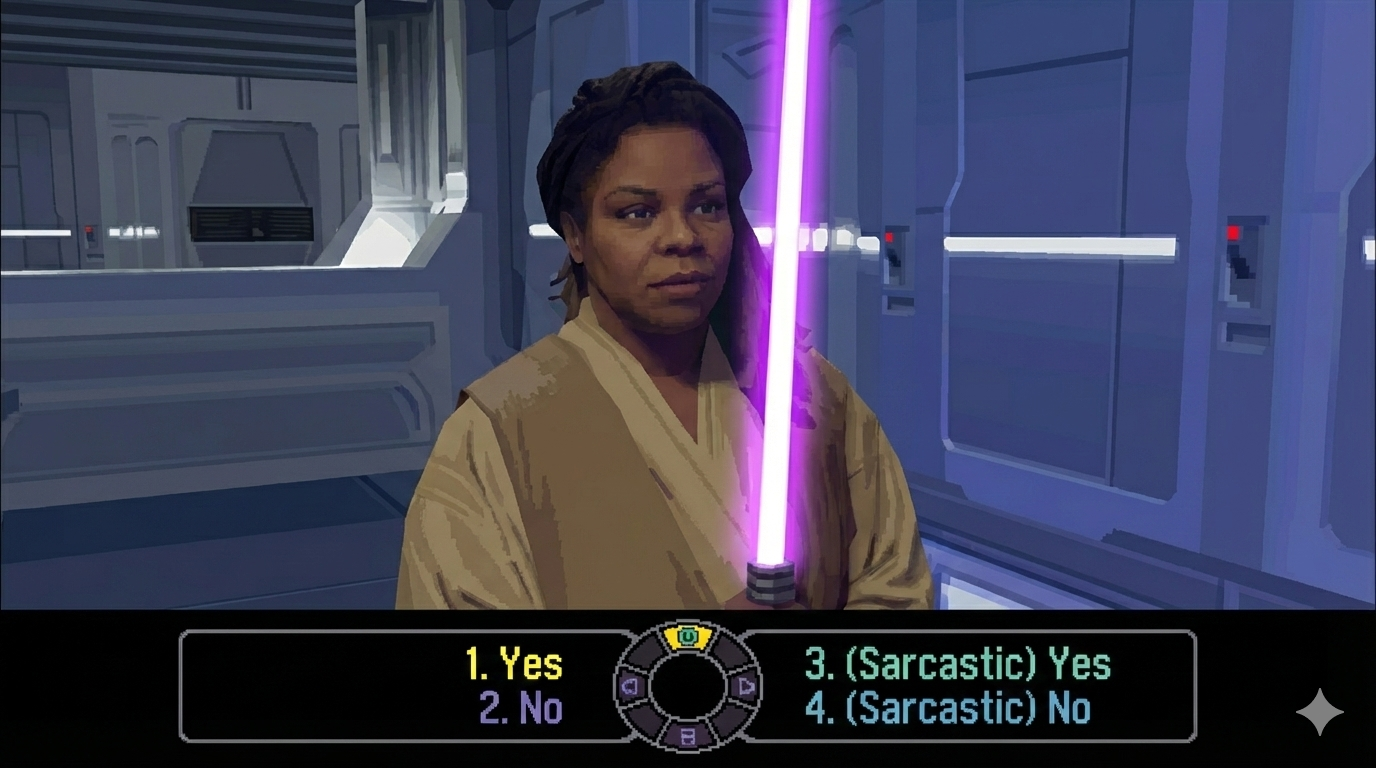 >Remove character customisation, preset black ghetto woman>Focus on racism in the galaxy, not ancient sith legends or galaxy destroying threats>Have the MC say how she understands how they feel because theyre black when talking to actual opressed alien races>No straight romance options, she dont need no man>Import as many real life USA social justice issues into the game as possible>Carth Onasi type crewmember exists only to try and mansplain to MC as often as possible only to get "epicly" owned by the MC>Villain is the middle aged straight white human male, president of the Republic>Game has 1 ending, overthrowing the democratically elected president and seizing power, to deliver reparations to black humans across the galaxy. Use UE5, make it look like ass, and recommended specs for 1080/60 are RTX 5080 + 7800X3D