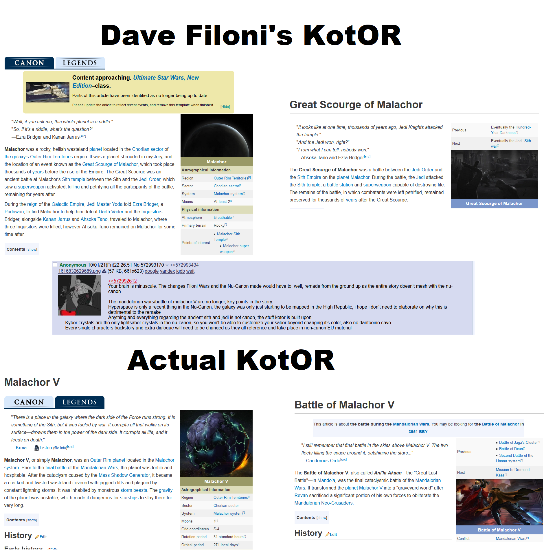 >>729870769>during this time periodFOTOR is supposed to be a spiritual successor rather that a direct sequel to the KOTOR and TOR, so it's likely far removed from the plot set forth by those games aside from the existence of Revan, and will be contained into it's own narrative. Will likely also incorporate Disney canon stuff too since KOTOR and TOR are relegated to Legends/EU canon.