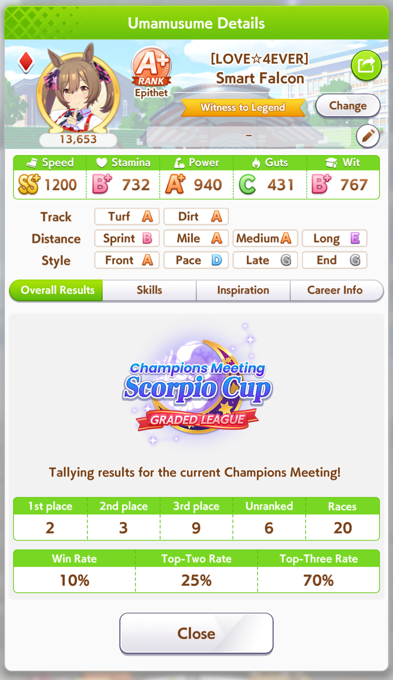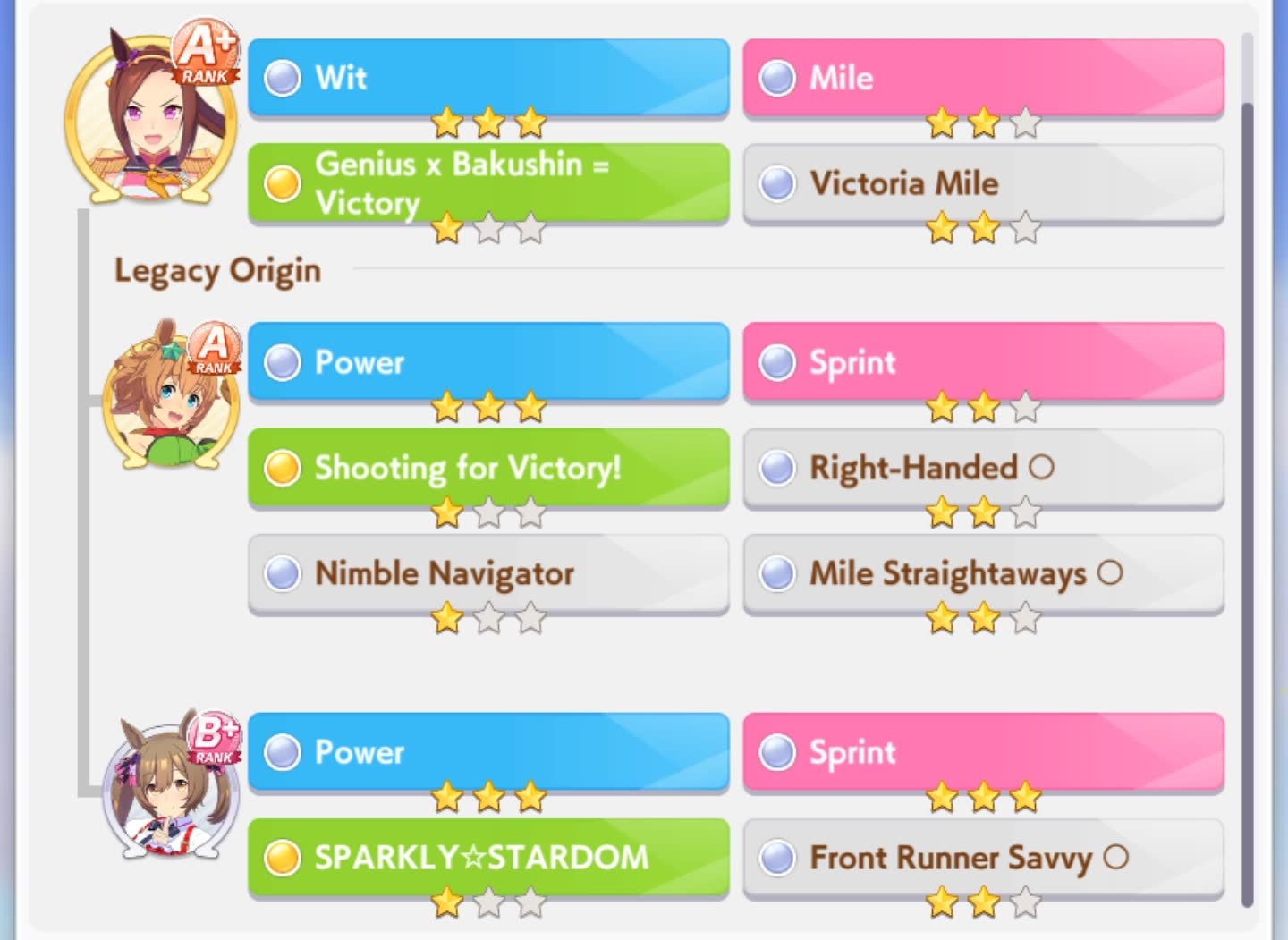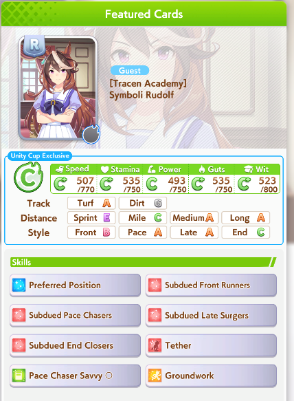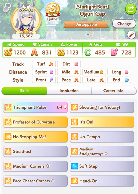 >>729895881Running 2 front 1 late, and it has been working ok, seems like chances are that she will get pushed too far back to proc SfV. And it seems like this Oguri will lose to lates even if she has a front ahead to proc ult off