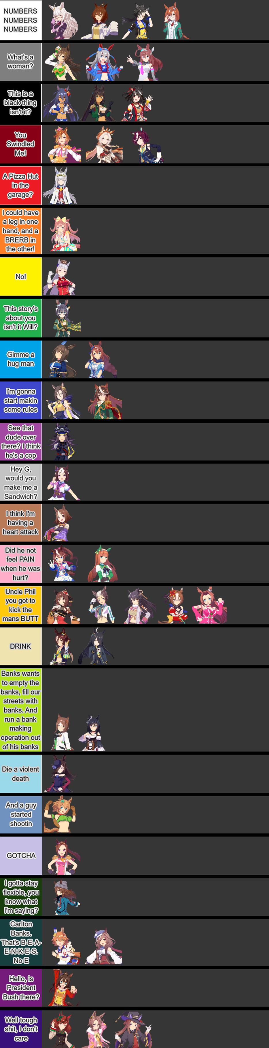 Now, I want you to remember that no bastard ever won a champion's meet by dying for his club. He won it by making the other poor dumb bastard die for HIS club. Men, all this stuff you've heard about /v/ma not wanting to race, wanting to stay out of the Champion's Meet, is a load of Uma dung. /v/ma trainers, traditionally, love to fight. All real /v/ma trainers love the thrill of seeing their girls race the strongest opponents.When you were newfags, you all admired the champions, the fastest runners, the fan-grinding heroes, the toughest danchous. /v/ma loves a winner and will not tolerate a loser. /v/ma trainers prime their girls to win all the time. I wouldn't give a hoot in hell for a man who lost and laughed. That's why /v/ma trainers have never lost and will never lose a Champion's Meet. Because the very thought of losing is hateful to /v/ma.