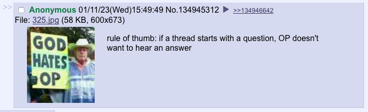 >>729898698Because it's a accusation and not a question. Hope this helps, tripfaggot.