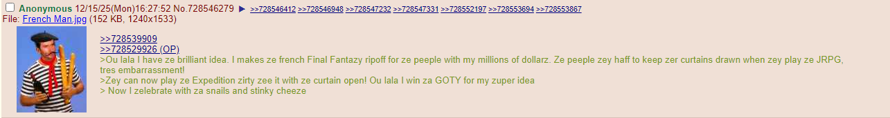 >>729883816France hasn't made anything distinct and with frequency that would earn them the moniker of FRPGs.