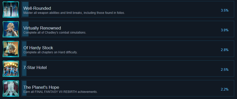 >>729902496here's REBIRTH achievement completion rates