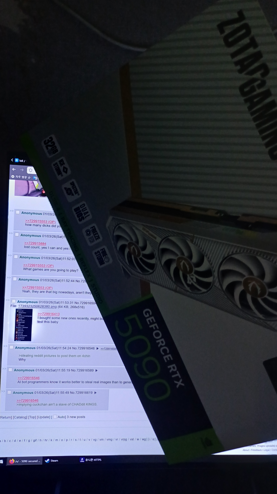 >>729917160You should leave the 5090 in the box and resell for 3x in 9 months. Get something modest like a 9060XT for the meantime.