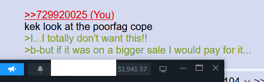 >>729920025kek look at the poorfag cope>I...I totally don't want this!!>b-but if it was on a bigger sale I would pay for it...