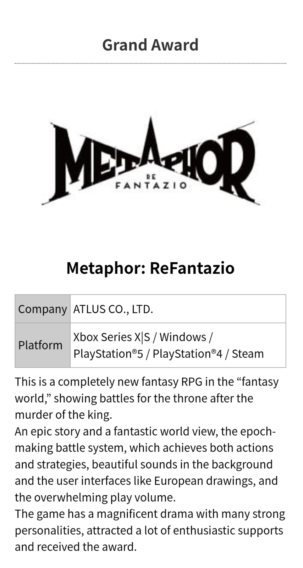 >>730048260>a huge FF game to Metaphor of all things?one took 4 years to make while the other took 8 kek.