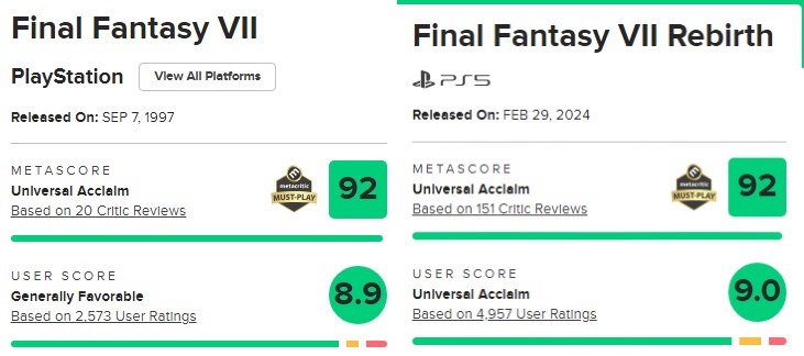 >>730043904I checked Steam reviews since they require a purchase to review and the falloff from Remake to Rebirth is bad. Not going to get invested in a game that turns to shit in act 2.