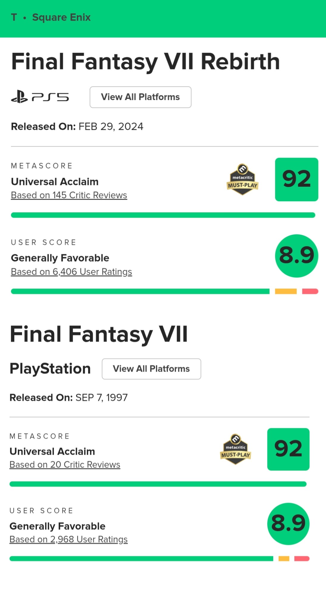 I really have no idea why anyone would wait this long for FF7R. It's been out since the fucking pandemic.