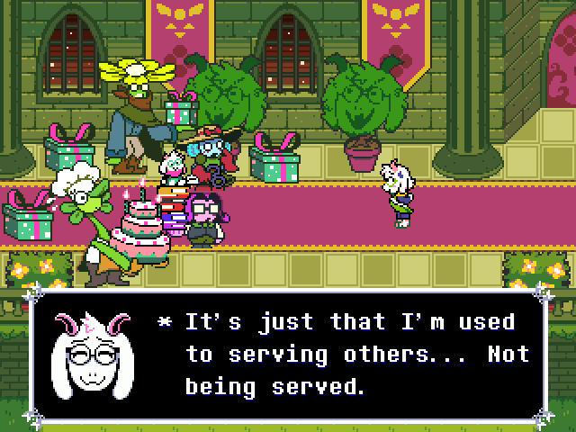>>730051203Whichever way the other flowers go, I think the Golden one really needs to be Flowey/Asriel like so it can be Ralsei's big character development.Ralsei needs to be faced with the reality of what he was made as (a tool in the shape of someone else) and overcome it to become more of his own person. The Shadow Crystal stuff will probably be tied to that so that he can get a super weapon. Hell, give him a scarf made of vines from the Flowey-like after whatever ordeal goes down.