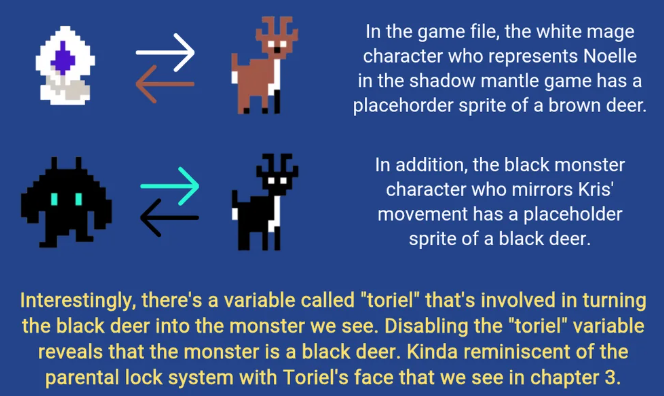 So, what's the non-Dess Knight explanation for what's going on with the Black Deer in the Mantle game?It makes sense with Dess Knight since you can just assume the monster mirroring Kris is meant to represent the KNight, and it becomes that black deer just like the white robe becoming the deer represents Noelle.So how does it work if Carol Knight or one of the other options?