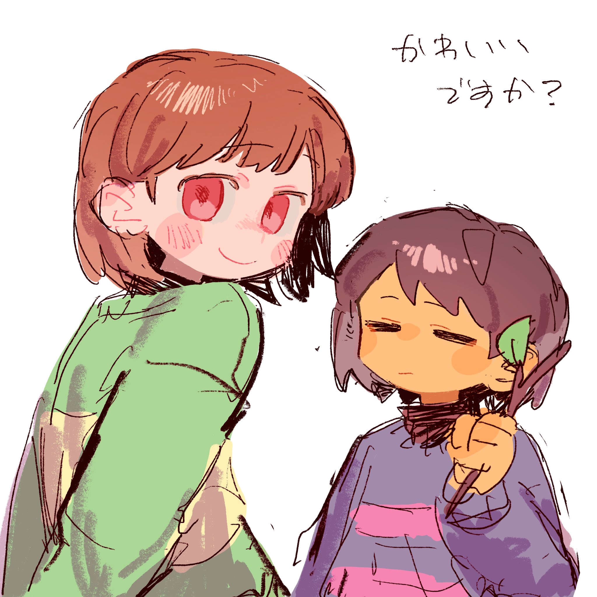>>730107685>Women keep self inserting as frisk and charaKekAnyways its all due to the generic haircut and lack of details when people draw them, even kris sometimes looks like chara for the same reasons