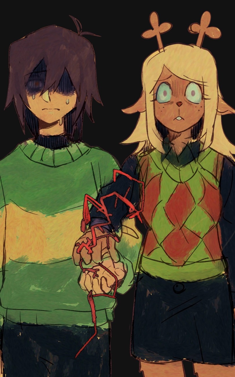 >>730051415Come on, man. Darkners are at their best when they have their own thing going on.>>730051636>a scarf made of vines from the Flowey-likeI'd warn you not to expect this sort of stuff after how Chapter 3 played out.