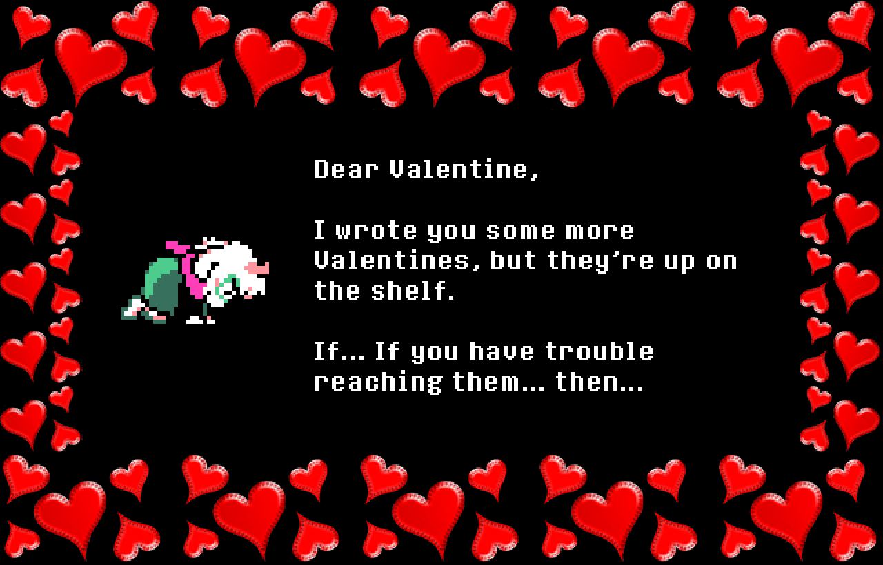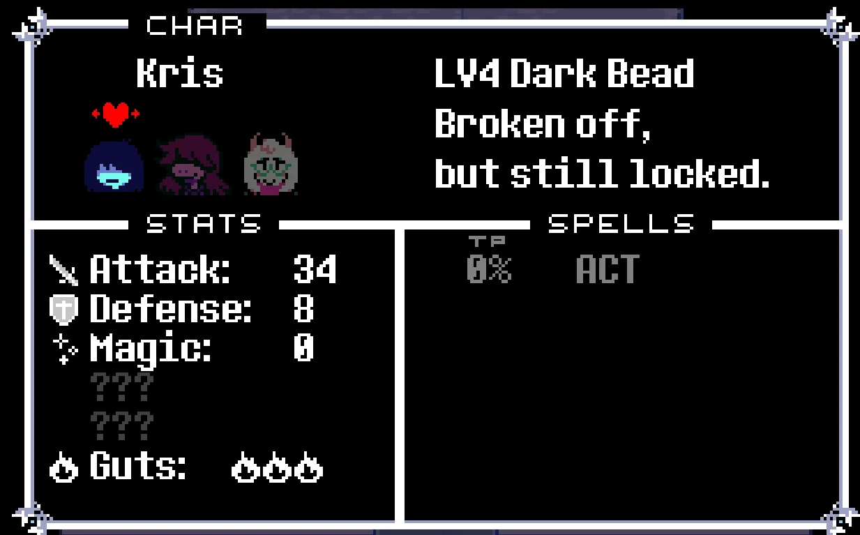 >>730106160We are undoubtedly represented by a red [[HeartShapedObject]], but this is not just a physical red SOUL. The SOUL is something Kris can grab and pull out of their chest, trap in a cage and beat with a stick, but it is also and at the same time a metaphysical pointer that can interface with the game elements, get pulled "out of the game" and be teleported through walls.If I wanted to be pedantic, I could also point out that the red [[HeartShapedObject]] in the intro sequence and Game Over screen is not the same sprite as the SOUL but a weirdly higher-resolution heart instead, perhaps reinforcing the idea that they are not the same object, but maybe that's a bit of a stretch.If we're asking "why would Kris's SOUL get summoned" my answer would then be that it doesn't have to be, the red heart abstractly represents us and doesn't become Kris until we become Kris. But if that's not satisfying it also can just be Kris's SOUL, it seems pretty clear to me that Kris becoming our vessel was always the plan from the start.The SOUL being Kris's is also a simpler solution because if the SOUL isn't Kris's, you have to answer the question "then what happened to Kris's SOUL?" and all the complications that come with that, like "where is Kris's SOUL now?," "how was Kris surviving without a SOUL?," "how did Kris lose their SOUL in the first place?," "why does Kris get hurt when the SOUL is damaged if it's not theirs?," etc.I have not seen a convincing theory that explains what happened to Kris's SOUL and addresses these complications, so I will continue to support my interpretation and believe the game when it says "Kris's SOUL"