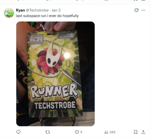 Caveman thoughever has made more appearances since, i think either AGDQ last year or SGDQ 2024 was his latest