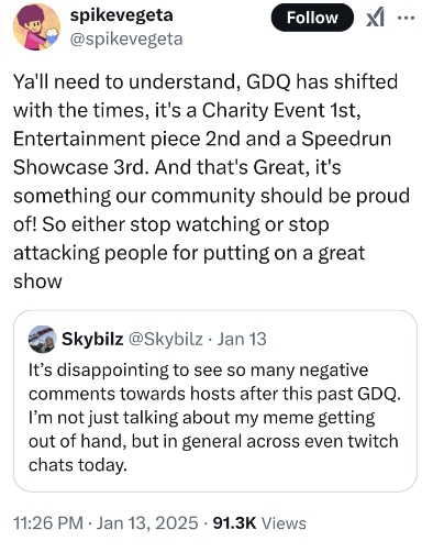 >>730089670Is it really that weird to want a speedrunning event to be about speedrunning games?