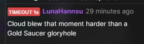 >[2026-01-05 18:54:54] <%m_cable> ResidentSleeper>[2026-01-05 18:54:58] DELETED: m_cable (ResidentSleeper)>[2026-01-05 18:55:02] BAN: m_cable (1s)This is a safe space, no criticism allowed. The show is perfect and the hosts are above reproach now bow down and give us your money you fucking trash. Trans rights.