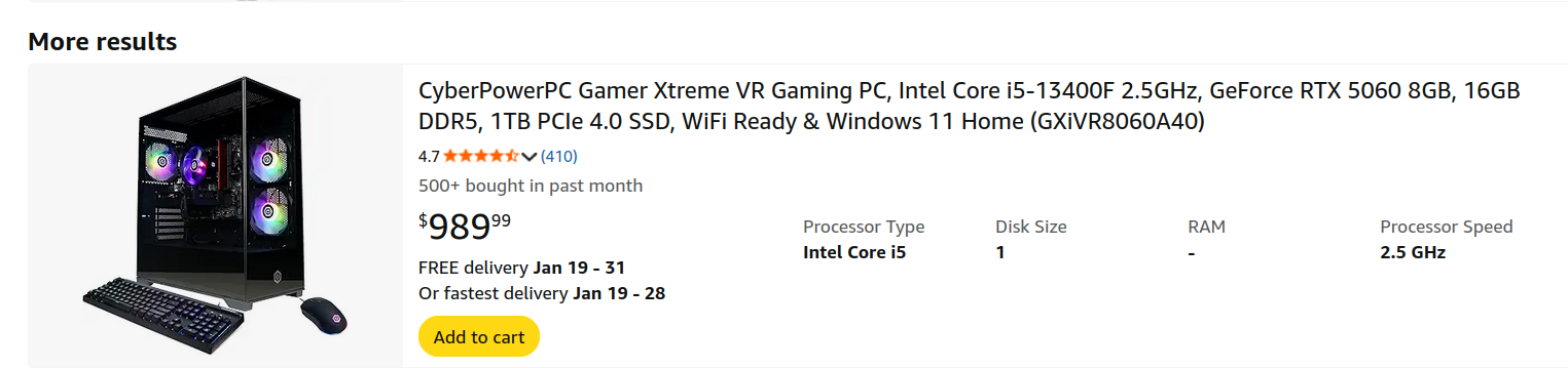 I expected 800 burgers for the base model before the component price explosion, so 1k seems about right after.Still a decent deal for a little custom pre-built, I feel bad for people trying to get into PC gaming with how much AI has fucked everything up.