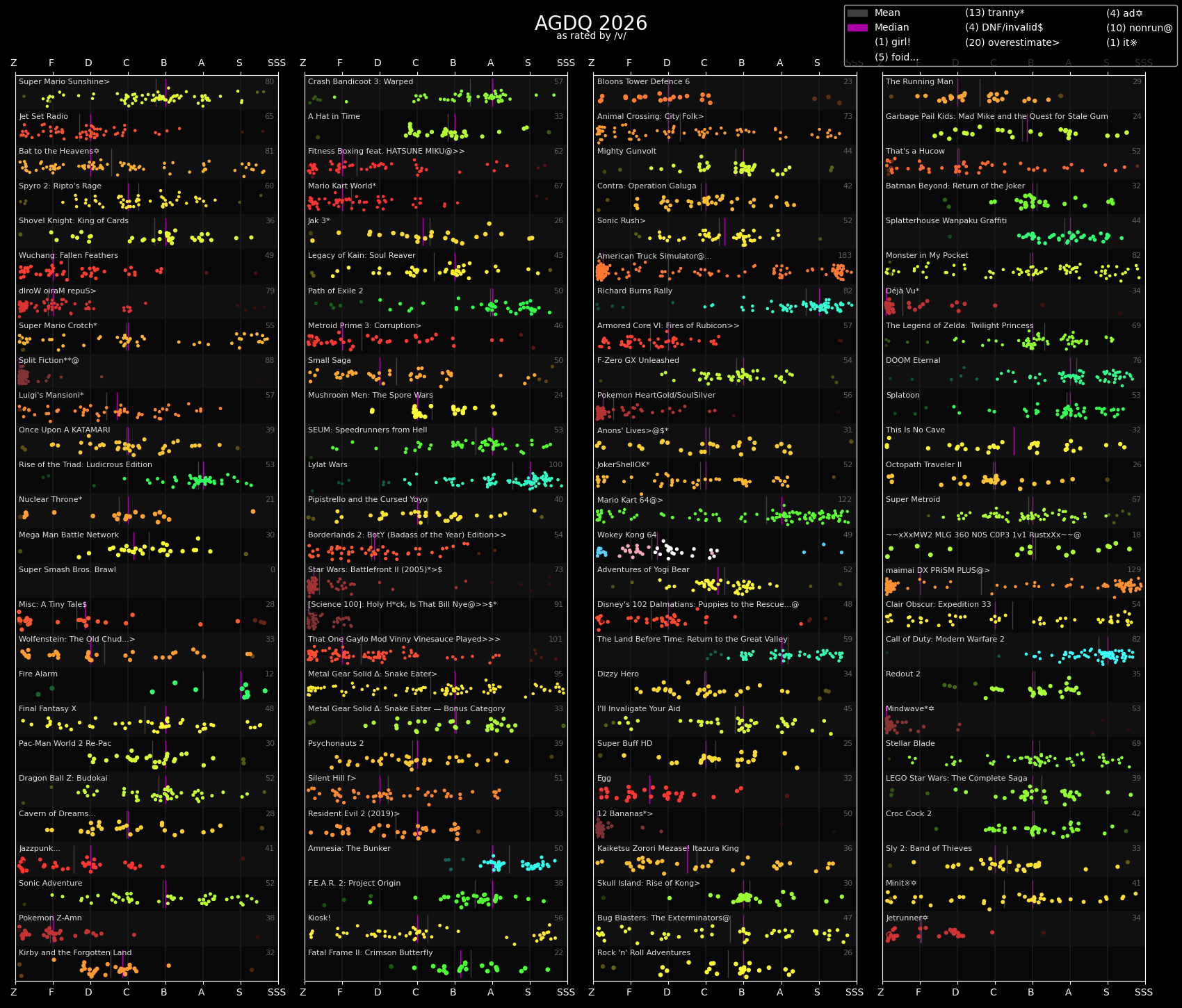 >>730443687I usually ignore all ZZZ and SSS runs anyways because then you get the actual score.Though the median dash being near ZZZ shows ZZZ did win.