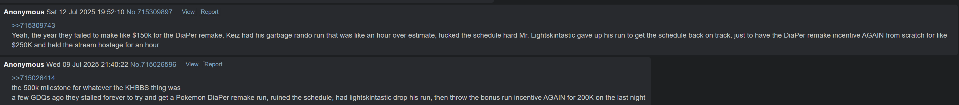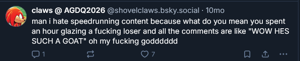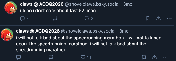 I always find it really funny when GDQers seethe about other marathons merely existing. Truly cult like.