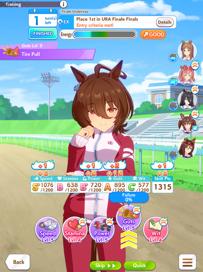is 746 stamina + 1033 guts + O firm conditions good enough for the next champions meeting?