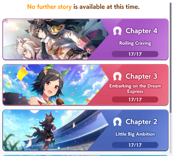 >>730516060just the career ones, but unfortunately that's the same reason I haven't touched half of the cast since I just want to rub one run out top speed most of the timeI only do the main story if there's a good card from it to get but I do read them, except for chapter 3 because I can't stand that crybaby retard