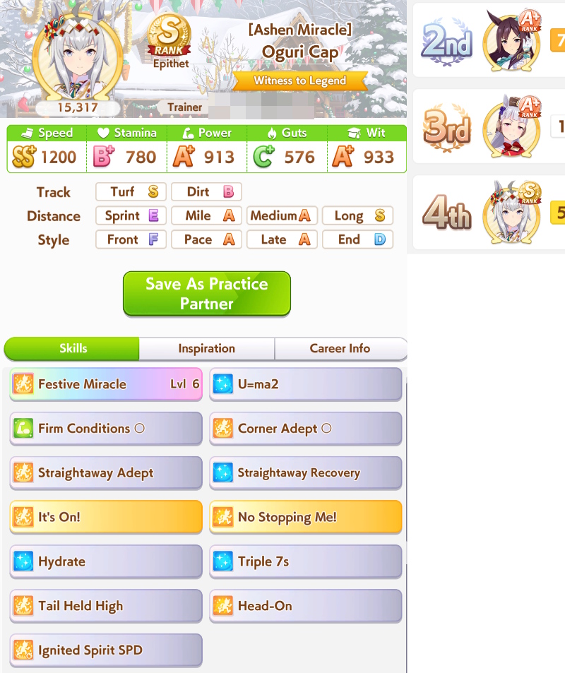 >>730527749End is winning a lot less compared to pace and front, in fact. I'd argue gold ship has kinda sucked so far even if perfectly built.