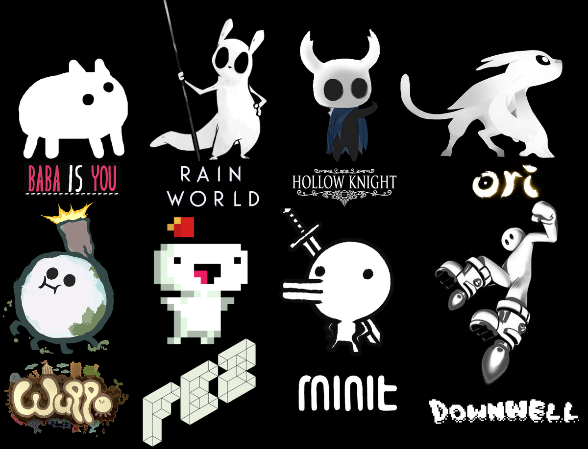 >>730510723This is the case with most of the characters on the "indie slop" white character image here.>>730510967>SlugcatDark environments and narrow tunnels, and the simplified design means they can have him move fluidly without worrying about it looking messy.>OriWhole game is dark blues and greens, and often well zoomed-out.>The KnightIn addition to keeping him visible, his white helmet is a unifying theme among most of the sentient insects. It implies a sense of belonging and placement.>WuppoYou mostly go through caves and dark places. Some areas are zoomed out so having him contrast highly is important. Plus you can customize his colour, so white works as a default.>MinitWhole game is black-and-white. If the visuals were flipped the glare would make it uncomfortable to play.>DownwellSame as Minit.>FezHaven't played.