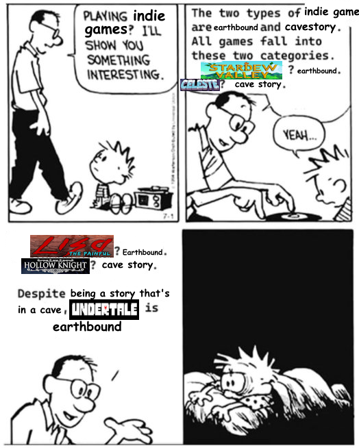 >>730523920It's about vibes, color schemes, general tone, etc. I would suppose being very grounded and bright makes Stardew Valley fall into the "Earthbound" category.