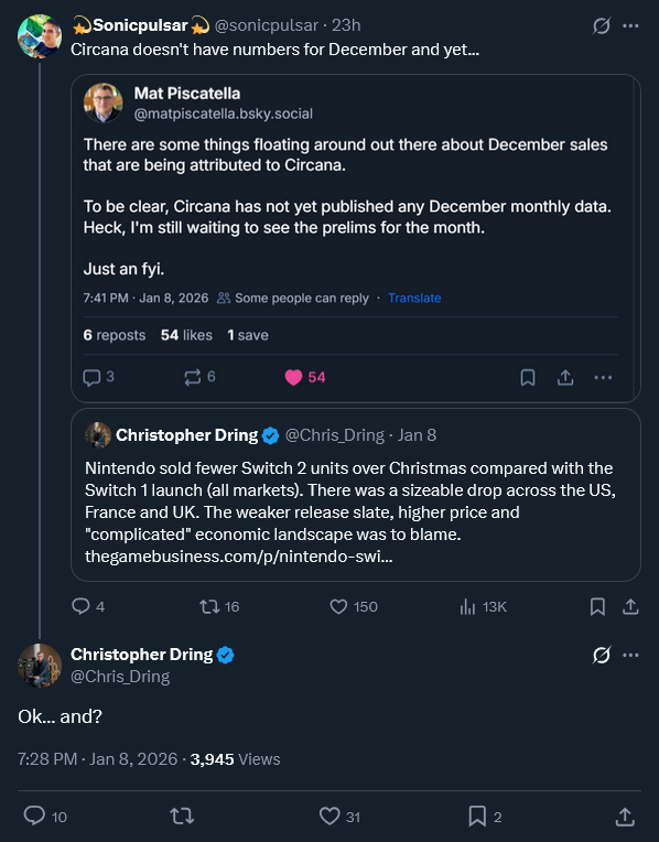 >>730519046>It was a Christmas flop.even if you assume dring's stats are real, it would mean ns2 sold at least 1mil in december in the USthat's nowhere near a flop