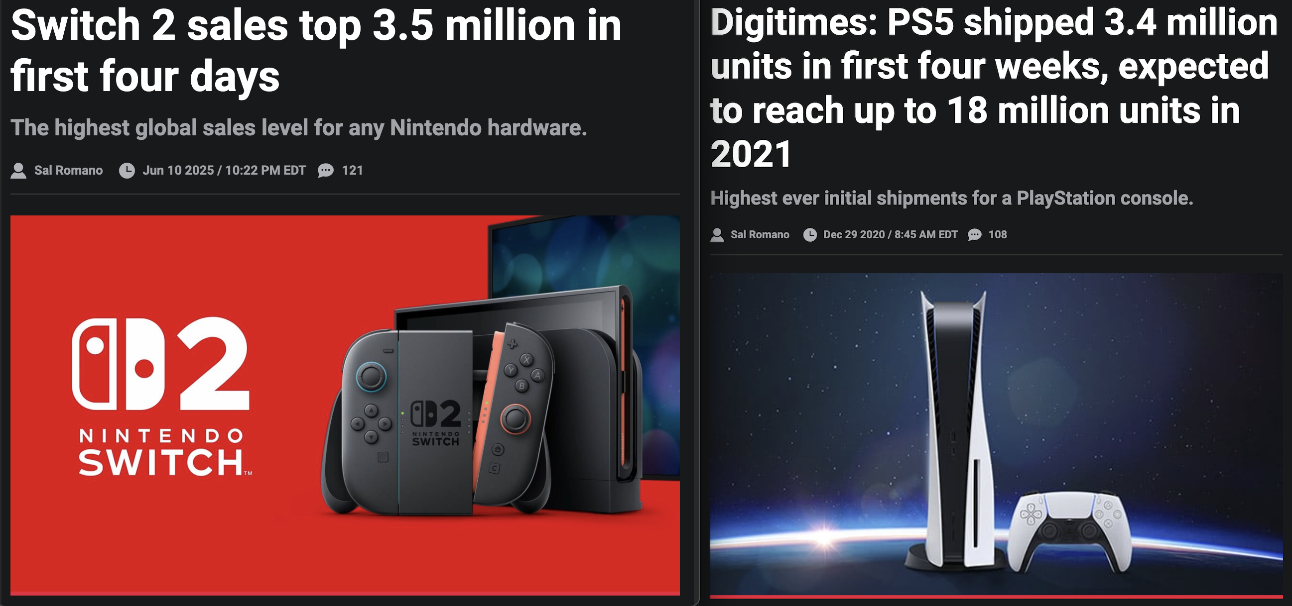 >>730513008NTA but every new PlayStation and Xbox console has had a new design, UI refresh and new features (even if rarely used) to set them apart from the previous gen. The Switch 2 just kinda looks like a Switch XL that maybe sometimes runs games better. I think their GameChat feature was supposed to be the big thing differentiating it but every console has party chat already and most zoomers just use discord anyway.Also, the Switch 1 really should not have done as well as it did. I'm not saying that in a "it's shit and deserved to flop!!!" cope kind of way, I mean that the stars aligned for the system to sell insane numbers. Nintendo internally turning focus away from Wii U in 2015 giving the Switch a good first year of games that were initially meant for that system, including the most anticipated game in their history and Animal Crossing releasing right in time for covid lockdowns right when Switch sales would have likely started to stagnate otherwise. Switch 2 doesn't and won't have either of those luxuries.
