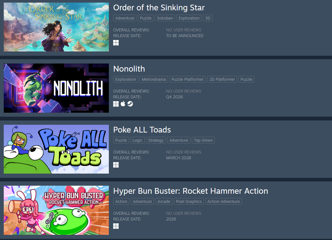 https://store.steampowered.com/app/2957360/NIGHTMARE_OPERATOR?snr=1_25_4__318https://store.steampowered.com/app/3077640/MIGHTREYA?snr=1_25_4__318https://store.steampowered.com/app/2298250/GearGrit?snr=1_25_4__318https://store.steampowered.com/app/3628050/Tamara?snr=1_25_4__318https://store.steampowered.com/app/1739080/Sword_Hero?snr=1_25_4__318https://store.steampowered.com/app/4145380/Avemary_Rocket_Captain_Patchwork?snr=1_25_4__318