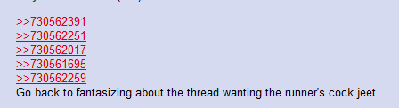 >>730563365>>730563372All I have is the fan art to keep me awake during this run. My feet a cold. My hands are empty. My legs are okay. It is true that I killed my mentor, but I am not his murderer.