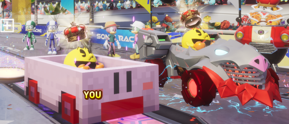 >>730582749I think there's almost nothing better than when you have a tightly clustered team bumping over into each other in the later half of the race, especially when one or two of you make a shortcut together and keep it together. The teamwork aspect feels way more personal and skill expressive than shootout or ring collection.