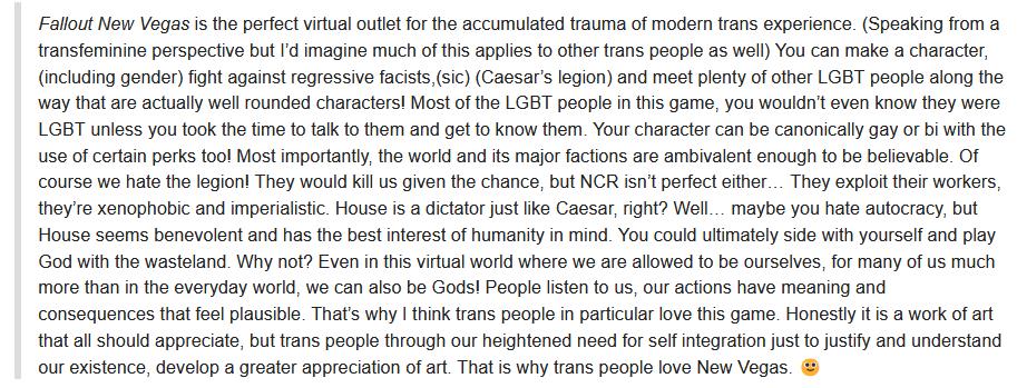 >>730624045If you visit r/fallout you see this exact same opinion posted there. But you already knew that.