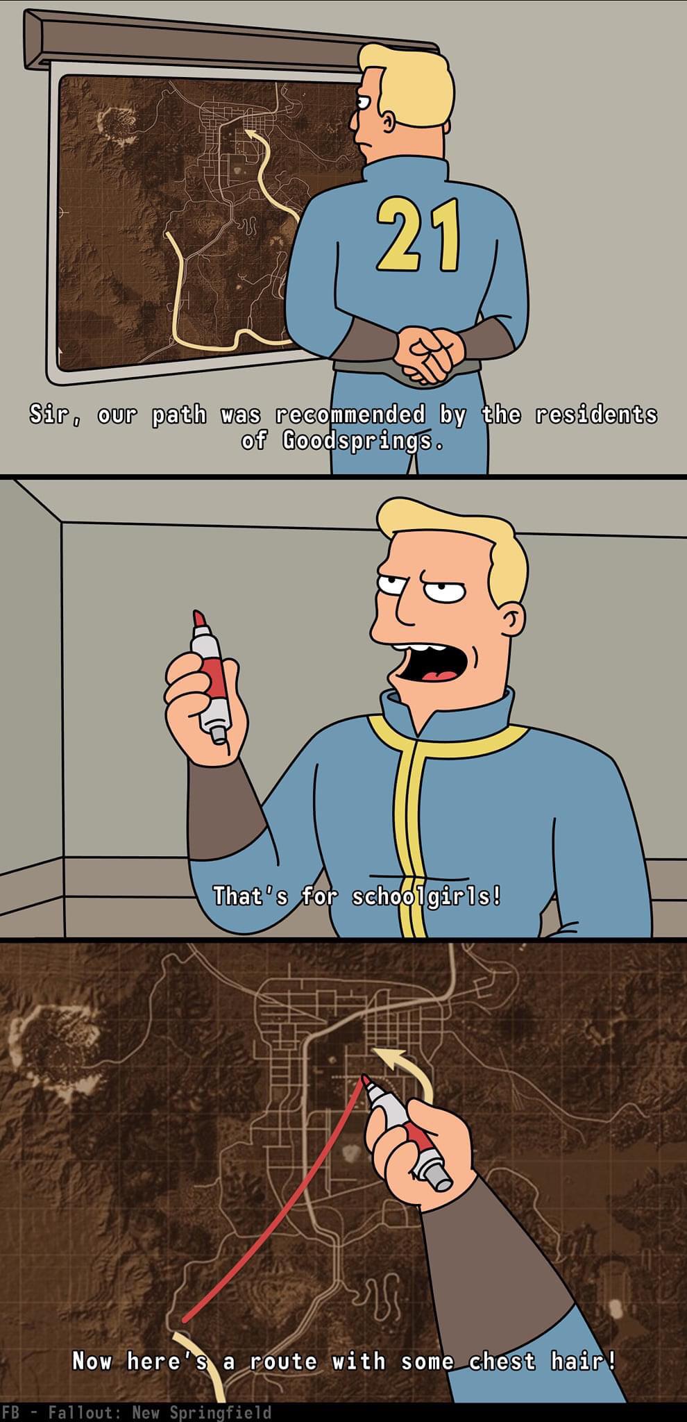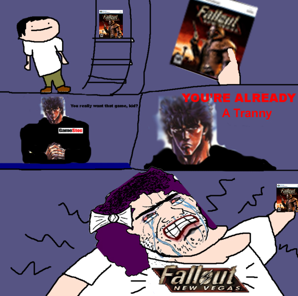 >>730575587>>730577030This mofo's sole quest arc is about bringing back together the biggest and baddest fascists there ever were to whack anyone else in the wasteland. I wonder if he ever seethes about that after Hoover Dam.