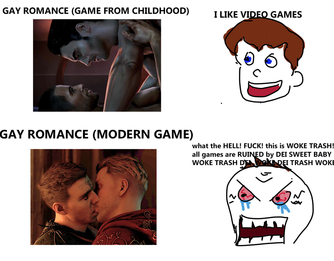 >>730579485>he doesn't know Mark Vanderloo had a stipulation in his contract that said his likeness can't be used to imitate gay relationships or gay sex>he doesn't know the gay option in ME3 literally cost Bioware and EA additional millions just for the option of having pointless gay butt sexthat's how much they hate you and how much they want to promote mental illness. It's a goal in and of itself. Veilguard is merely a culmination of this ideology, just wait for ME4