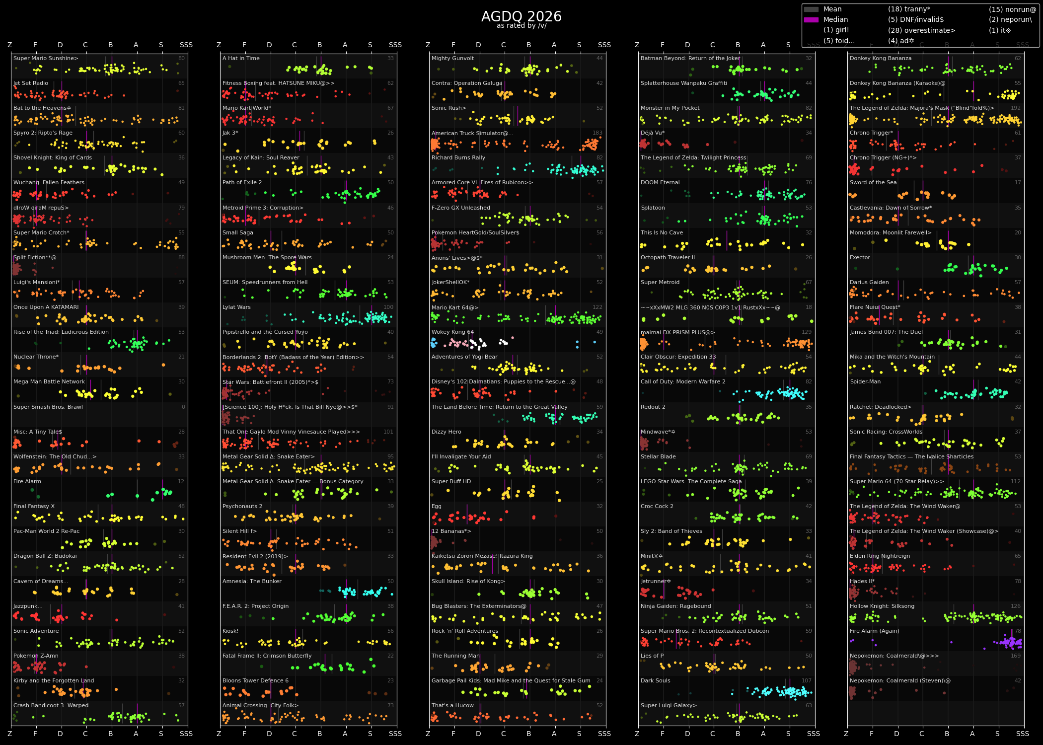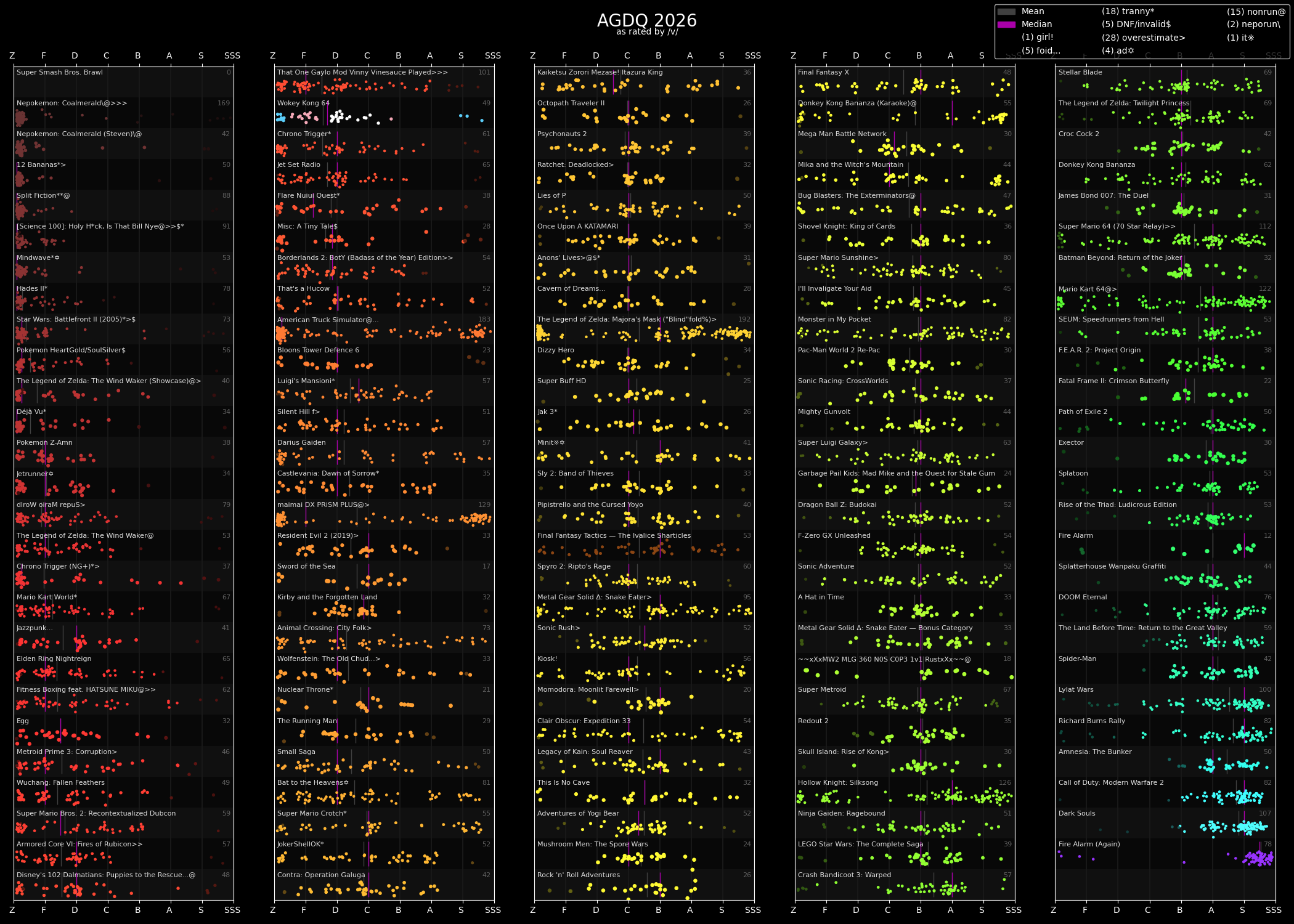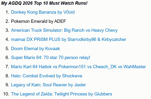Legit think it was the worst GDQ.>look at the bsg plus schedule>scan through the list of runs>instantly find games and runners i'm interested in watchingNice. Pity the Australian one right after is pretty much unwatchable for me because Euro/Aus times.