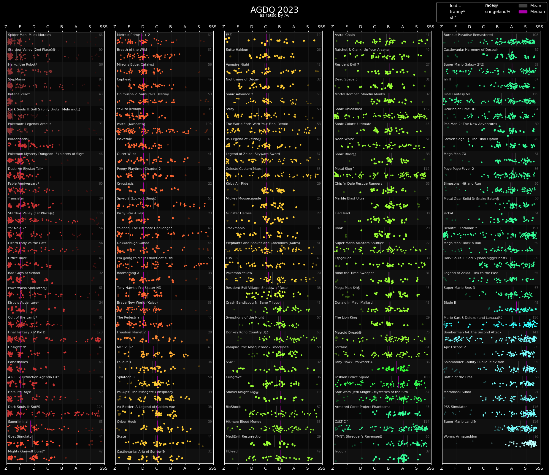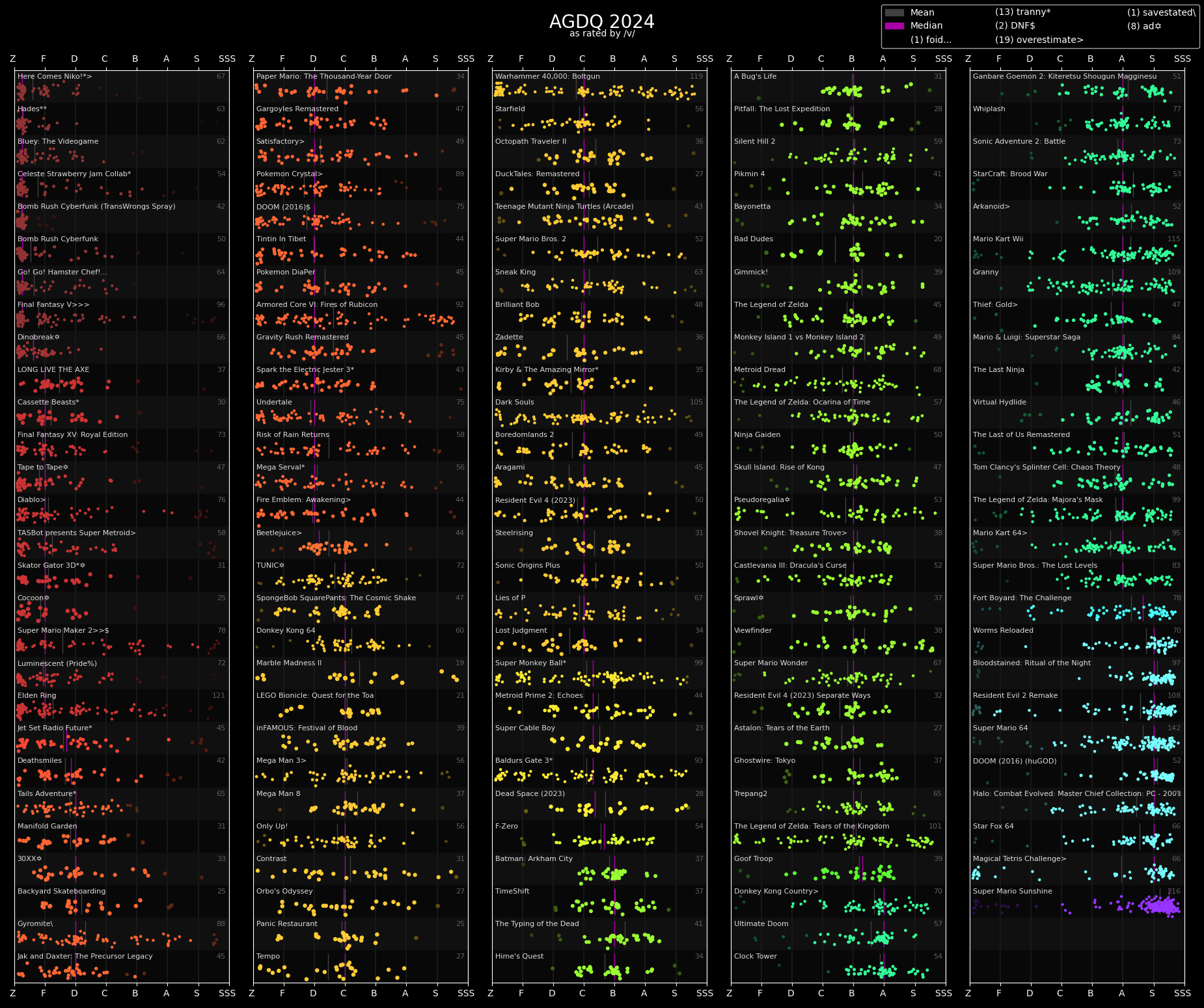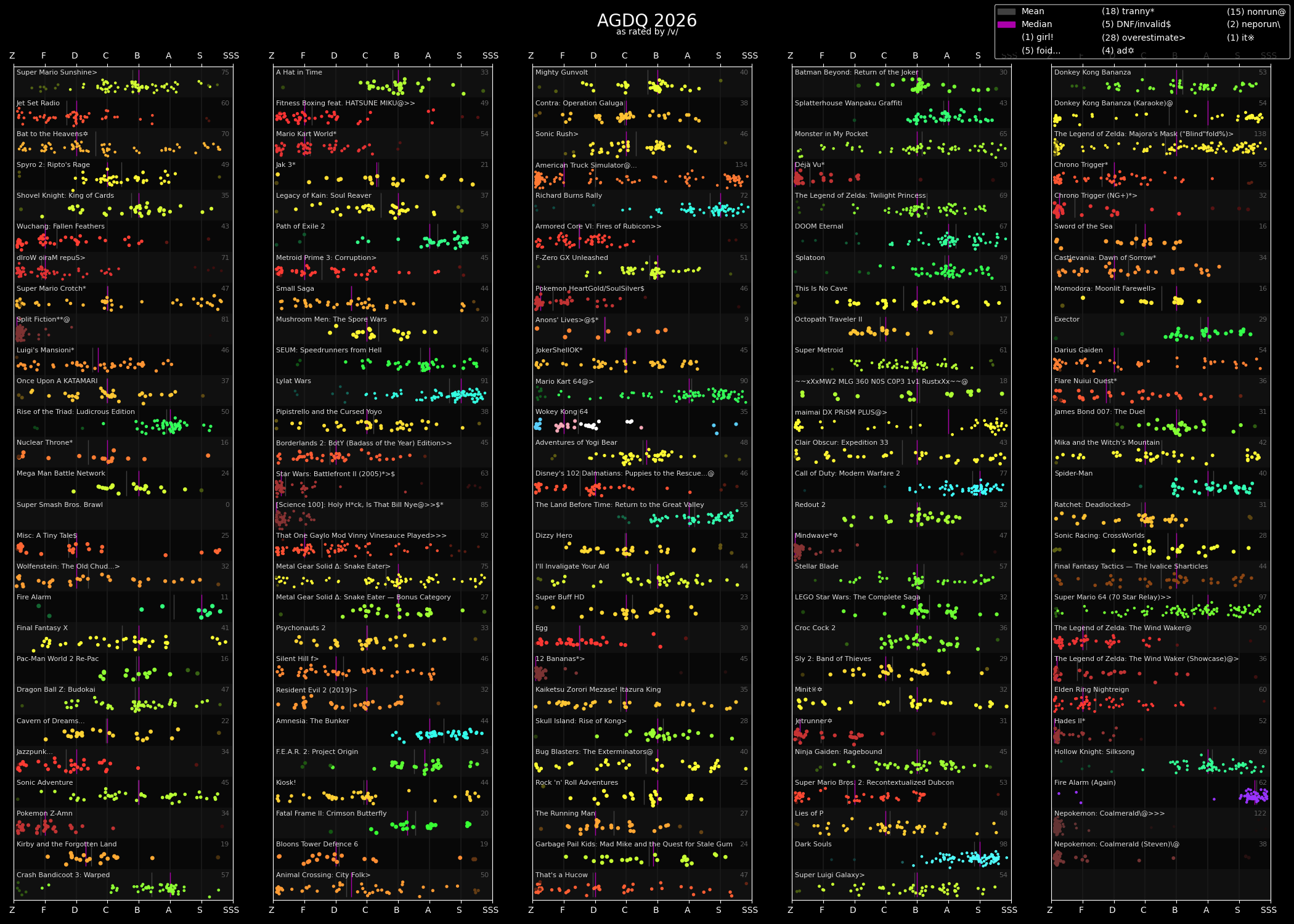 Legit think it was the worst GDQ.>look at the bsg plus schedule>scan through the list of runs>instantly find games and runners i'm interested in watchingNice. Pity the Australian one right after is pretty much unwatchable for me because Euro/Aus times.
