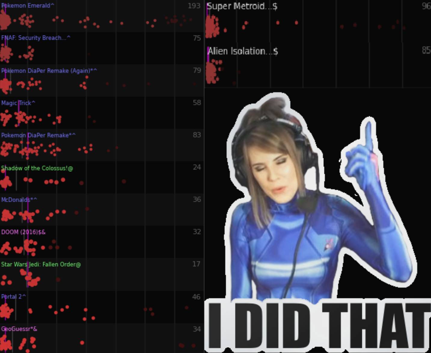 what stood out to me this year was the severe lack of just comfy, late night runs. i know there were some (heard cod was good) but overall i just never got to relax watching for some reason. i think maybe it's due to too many meme games