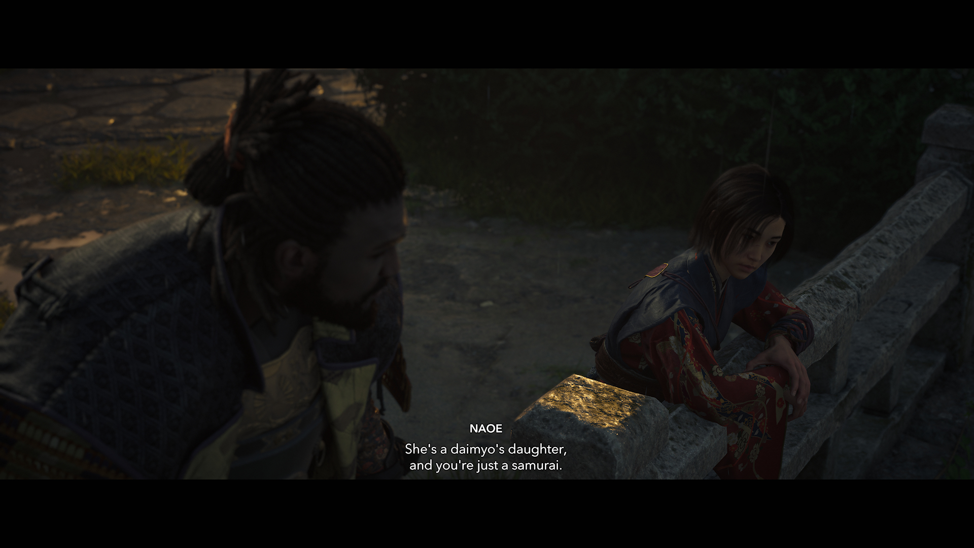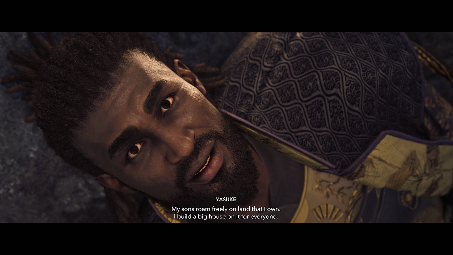 In a discussion with Naoe about what their hopes for their lives were or could have been if not for the whole Shinbakufu/Templar thing Naoe specifically says she wants to bang an Igan man and pop out three children to make her dad proud while Yasuke says he wants to be back home in Africa on land he owns as his children run around it.