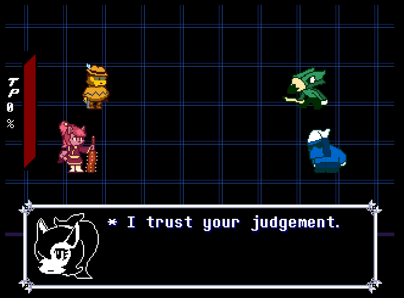 I feel like it'd be pertinent to link something people could play, like one of the Deltarune Yellow Demos over here.