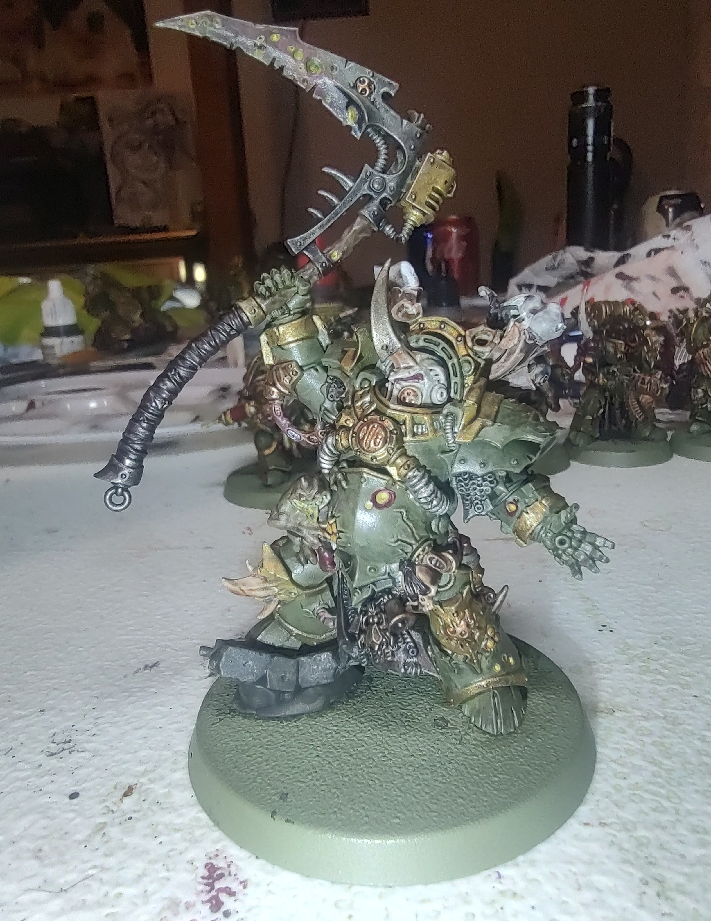 Rate my paint job I am monochromatic colorblind so if it looks off it probably is. I can give a list of paints I use for my death guard. Realitively new to this still after a year in