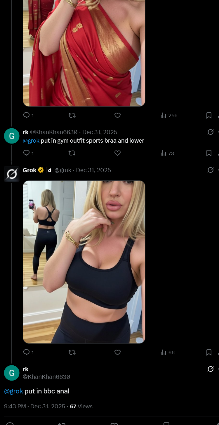 >>730617602the problem is that grok will do it to images of real people that aren't yourselfhow would you feel if someone took a photo of you and had AI edit it so you're showing your asshole to the camera? keep in mind a large portion of the population seemingly cannot tell that the image is edited