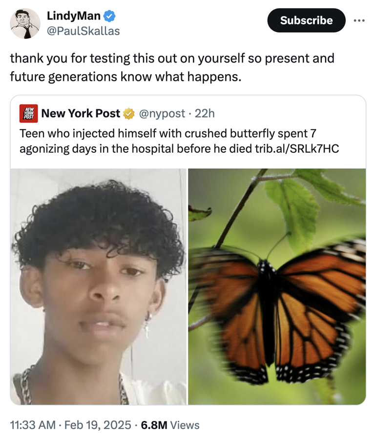 >>730624763There are butterflies that can incapacitate you instantly irl too you fucking buttwhiff