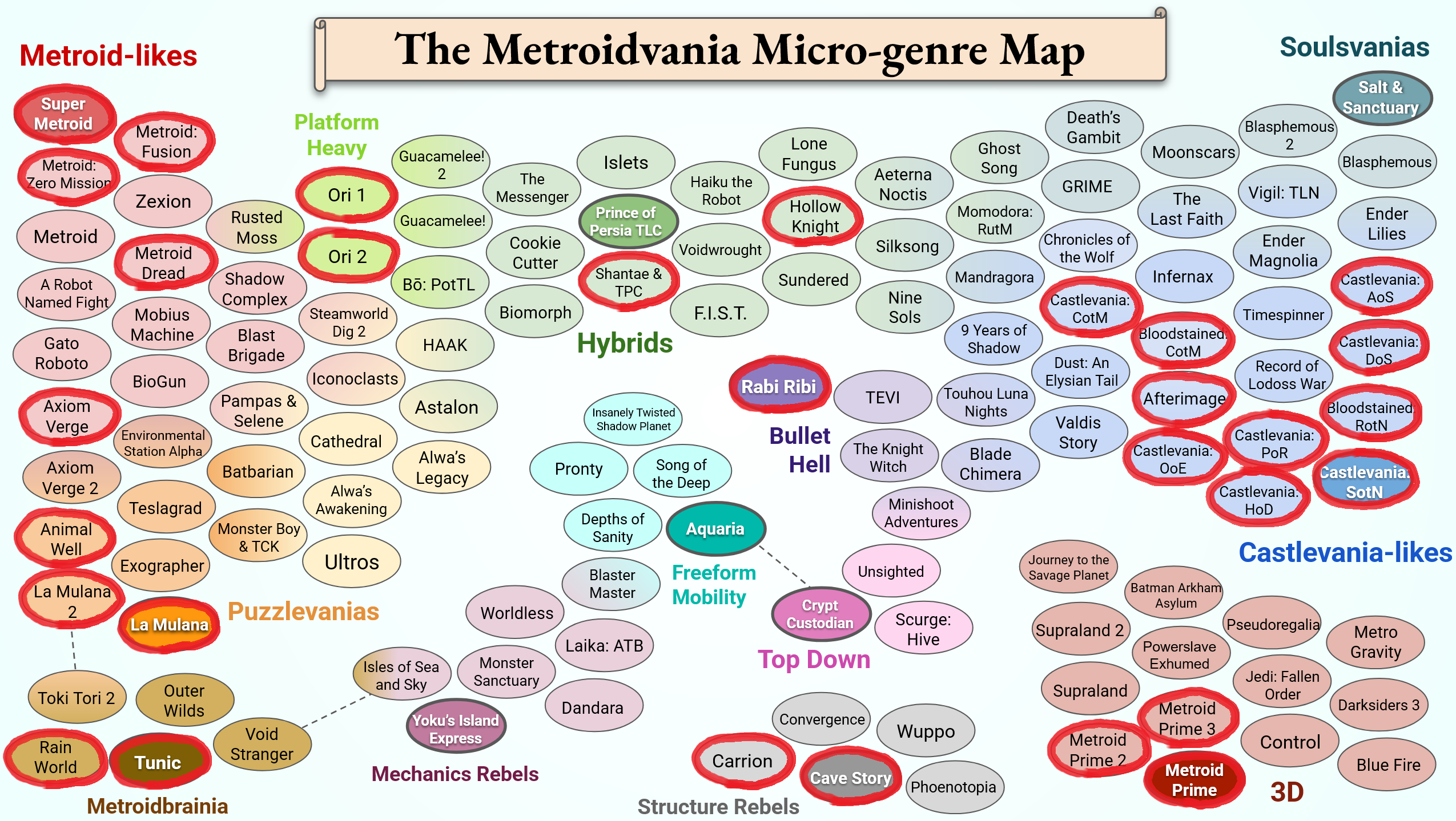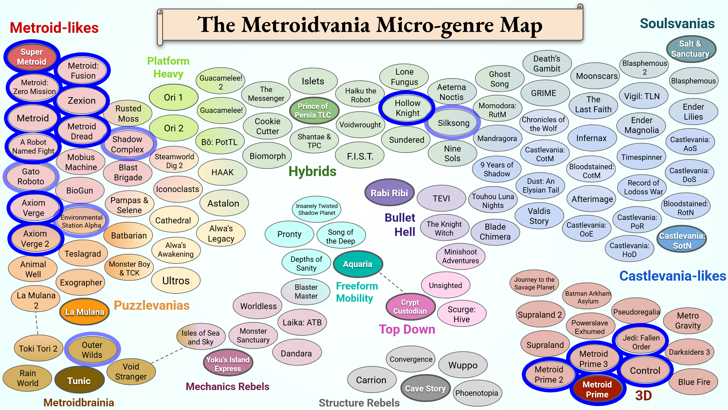 The big 4 are >SotNThe godfather of all metroidvanias, the one game every good metroidvania takes as a base but hardly ever comes close to reach its glory, you must play it out of respect.>Ender LiliesA new classic and a worthy spiritual successor of SotN, beautifully crafted.>Rabi-RibiThe gameplay above all else with this one, it can adapt to any player from the most casual to the most masochistic hardcore and give them what they are looking for: FUN>Nine SolsPerfectly balanced, the game sets an impossibly high bar for new metroidvanias, good story, good combat, good exploration, good music.