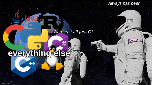 >>730649304>it's all just Cpresent day C compilers are written in C++modern C standards are basically backporting the best C++ features with 10 years delay which is not necessarily a bad thing, C should stay true to KISS